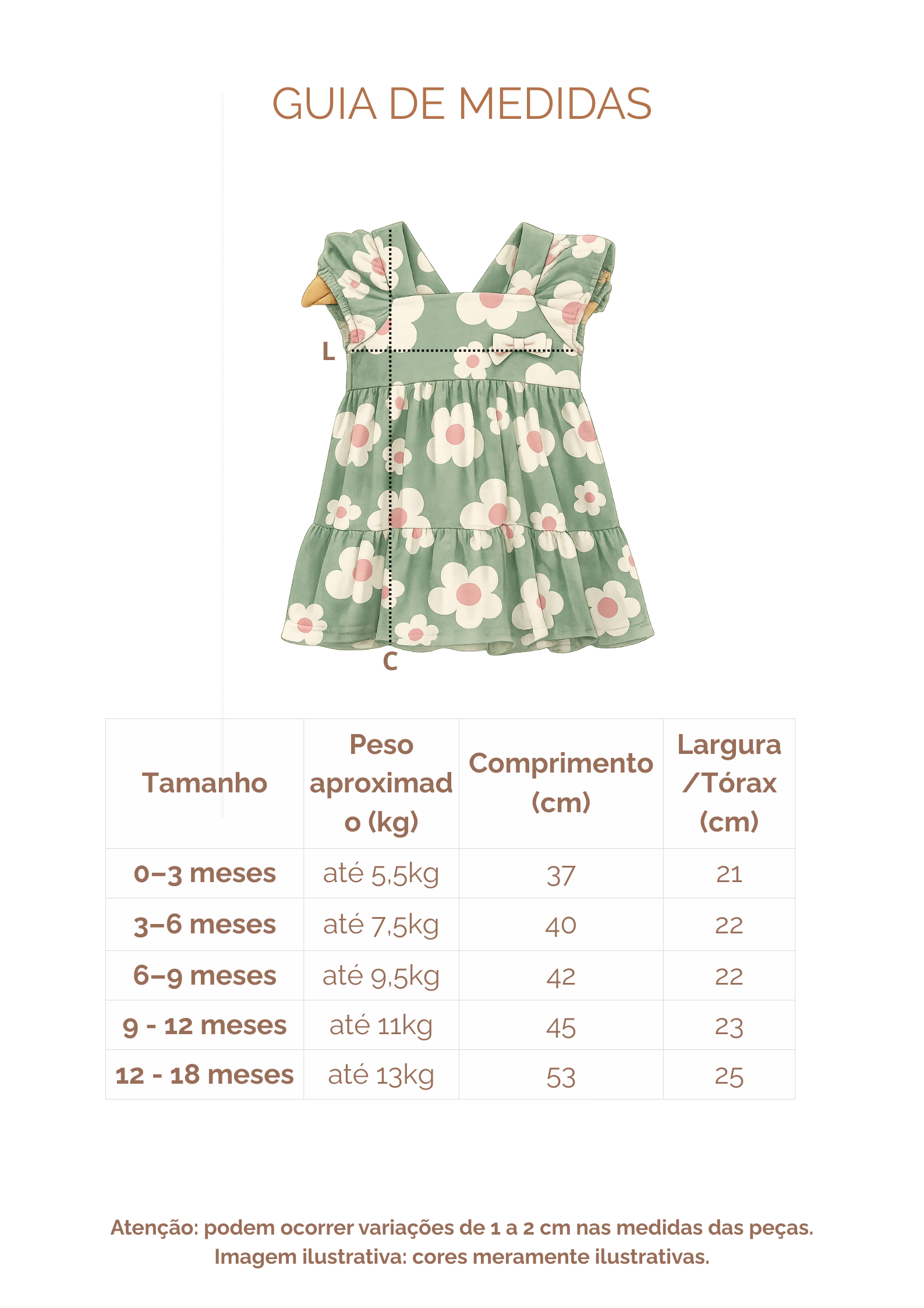 Vestido infantil delicado e confortável, perfeito para visitar a casa da vovó e do vovô ou para passeios especiais do dia a dia. Confeccionado em 100% algodão, é leve, macio e ideal para a pele do bebê. Possui elástico nas mangas, que garante melhor ajuste e conforto, além de laço delicado na parte frontal, trazendo um toque fofo na medida certa. O botão de pressão nas costas facilita na hora de vestir e trocar.